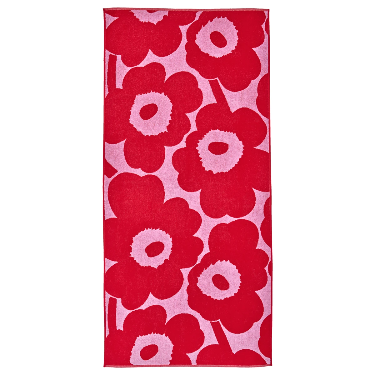 A bold bath is easily achieved with the Marimekko Unikko Pink / Red Bath Towel. Maija Isola’s poppy pattern has been a fan favorite since its 1964 debut and the plush and absorbent 100% cotton is the perfect canvas to capture its beauty. Mix and match with other Marimekko linens, such as the Marimekko Nimikko & Ujo striped bath towels, to create a bath collection that you will use and admire for years to come.