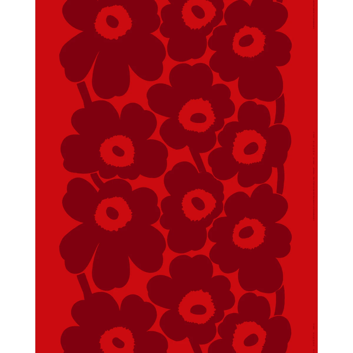 Deck the halls with boughs of poppy! Maija Isola’s classic Unikko (poppy) print is festive yet modern in a monochromatic colorway of red and maroon. Printed in Finland, this 100% cotton fabric can be crafted into curtains, table linens, wall hangings and more to bring cheer to your home during the holidays and beyond.