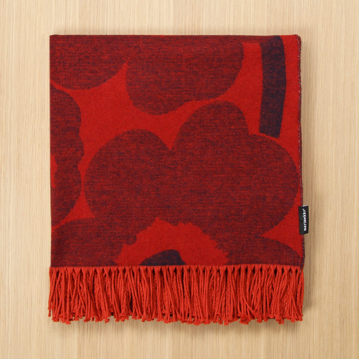 Maija Isola’s Unikko pattern is festive for the holidays and beautiful year round in deep shades of red. The Marimekko Unikko Red / Plum Blanket is made from a soft and warm cotton-wool blend to keep you warm all season long. When not in use, it serves as textile art draped across a sofa back or entry bench. Fringed ends adds to the blanket’s cozy appeal and timeless style.