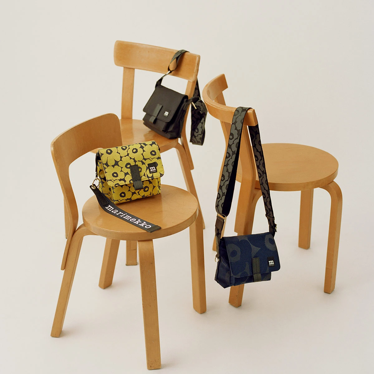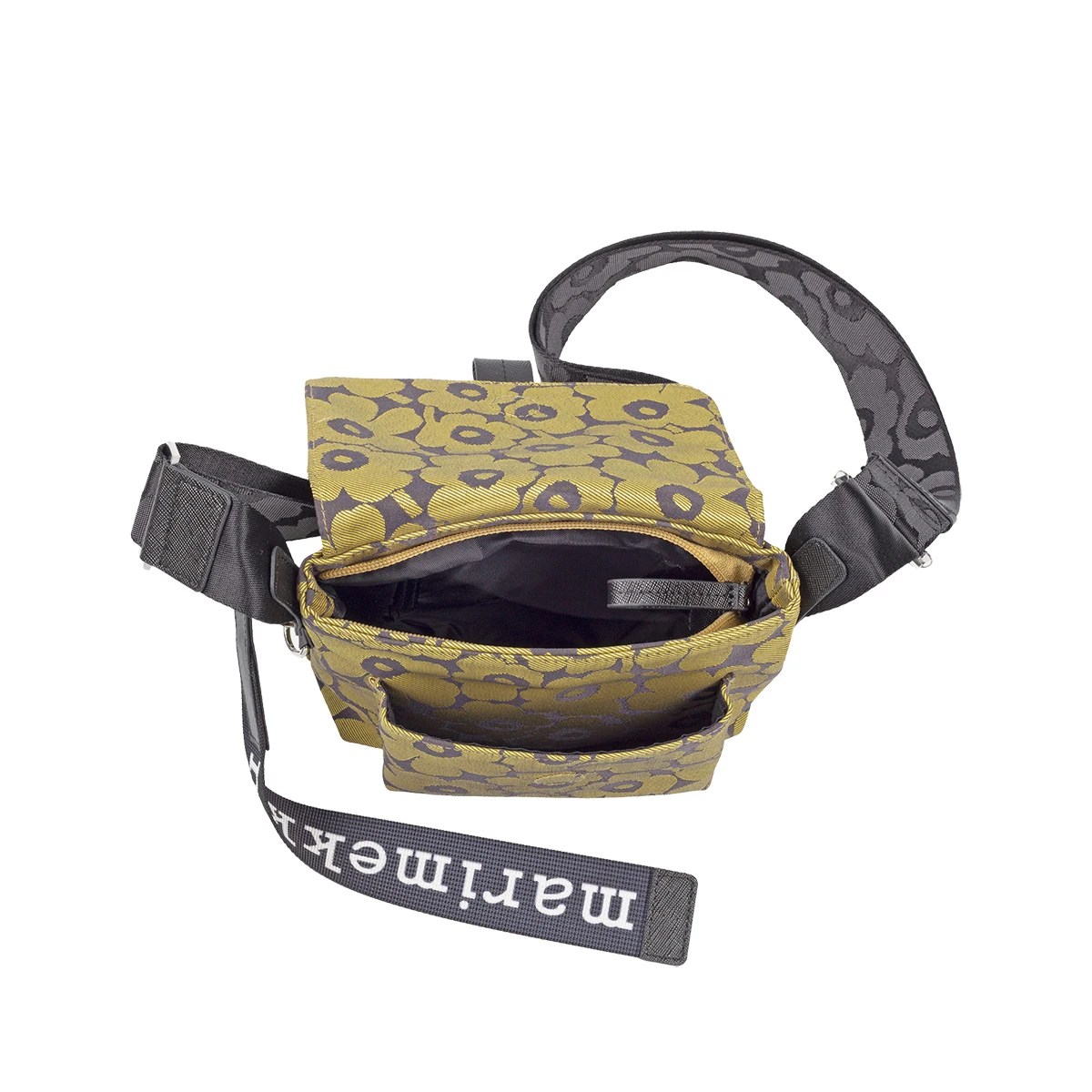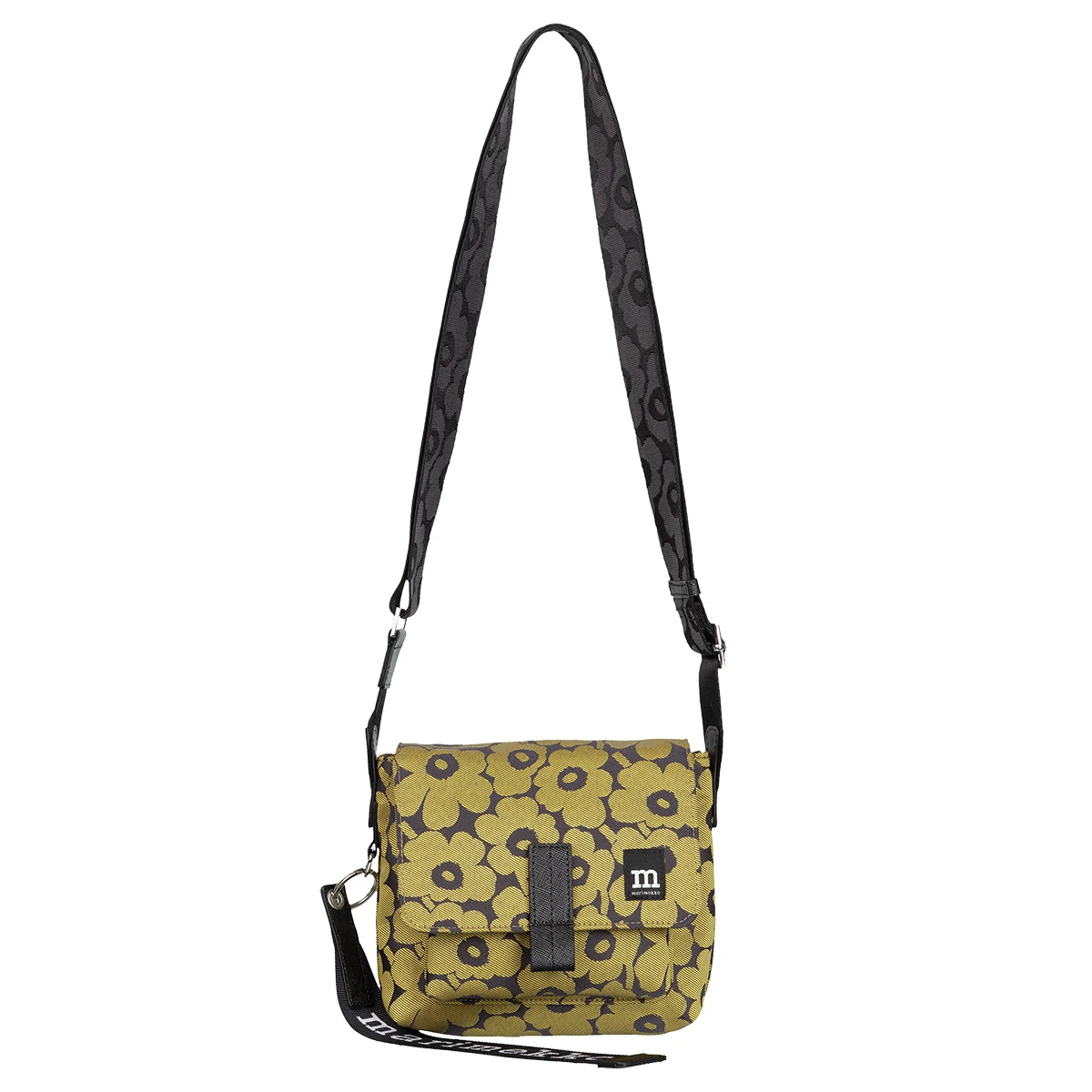 - Adjustable shoulder strap, removable Marimekko logo keychain.