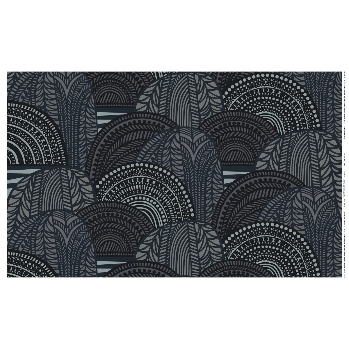 Sanna Annukka’s Vuorilaakso (Mountain Valley) pattern feels folkloric, with crisp linework decorating the rolling hills and mounds. Made in Finland, this heavyweight cotton fabric is coated with PVC for a slick and wipeable surface. Cut a custom tablecloth–no hemming needed–or, make a smock, bib or placemats with this versatile Marimekko fabric.